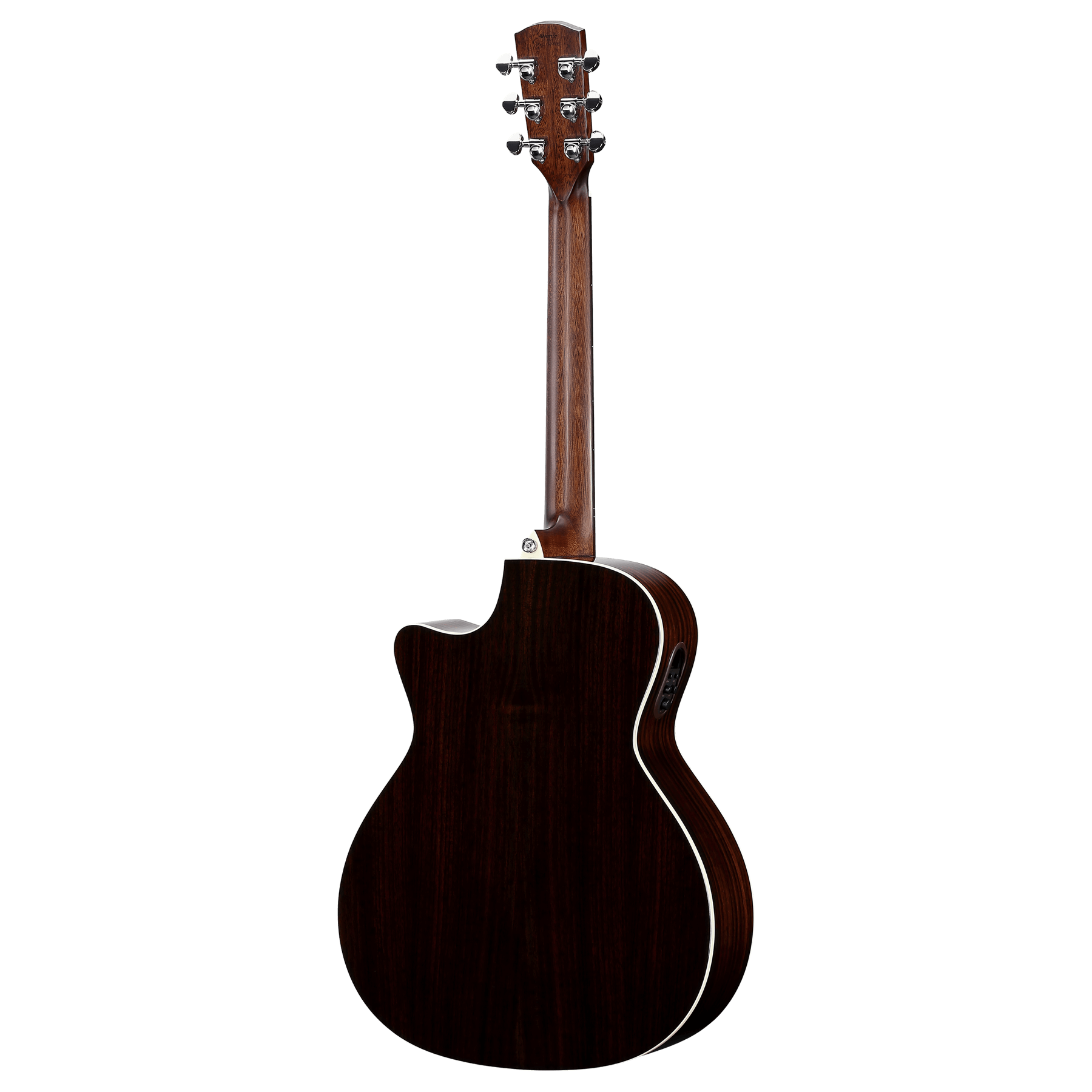 The AG70ce Black is a beautifully responsive Grand Auditorium guitar delivering glistening trebles and a robust, clear bass response that makes this guitar suitable for most styles of music and playing. It has an understated elegance with striking contrast between the natural AA Sitka top and dark Indian rosewood back and sides.
