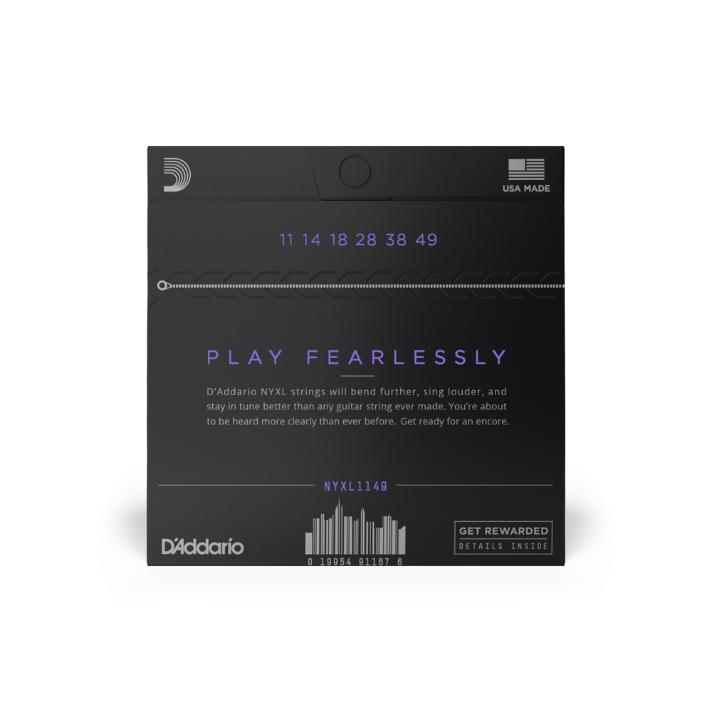 NYXLs will bend farther, sing louder, and stay in tune better than any string you’ve played before. As our premium uncoated electric string, NYXLs offer higher break strength, enhanced tuning stability, and accentuated mid-range frequency response, providing more presence and crunch to cut through the mix. Made with a NY Steel core, premium nickel-plated steel wrap wire, and Fusion Twist technology, NYXL electric guitar strings are tough enough and versatile enough to handle anything. 11-49 Medium gauge strings provide increased volume, with slightly more tension and resistance.