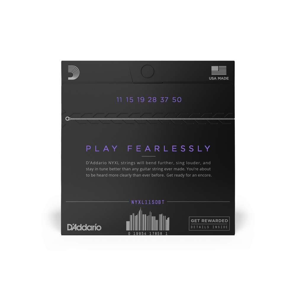 NYXLs will bend farther, sing louder, and stay in tune better than any string you’ve played before. As our premium uncoated electric string, NYXLs offer higher break strength, enhanced tuning stability, and accentuated mid-range frequency response, providing more presence and crunch to cut through the mix. Made with a NY Steel core, premium nickel-plated steel wrap wire, and Fusion Twist technology, NYXL electric guitar strings are tough enough and versatile enough to handle anything. This 11-50 Medium Balanced Tension set is designed for greater dynamic control and a more consistent feel between strings.