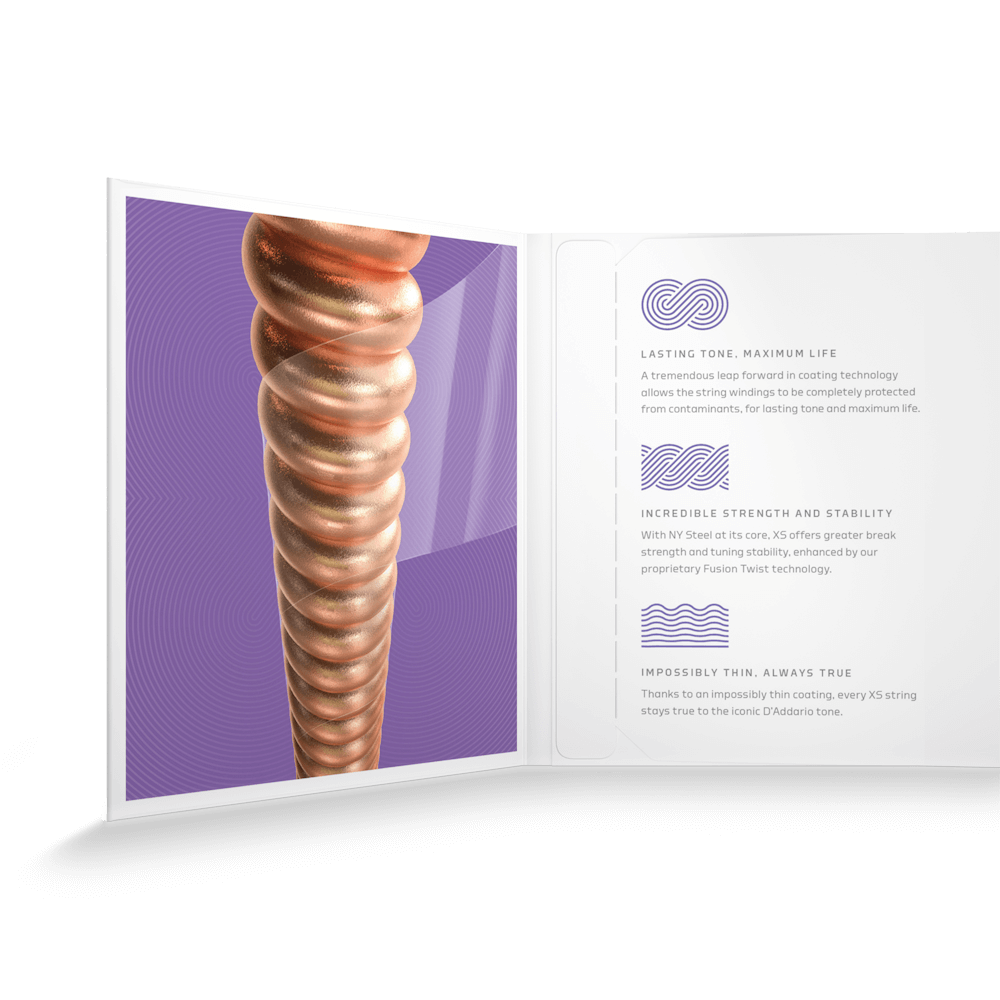 - XS Phosphor Bronze strings have the longest life of any D’Addario acoustic string, thanks to the ultra-thin XS film coating.