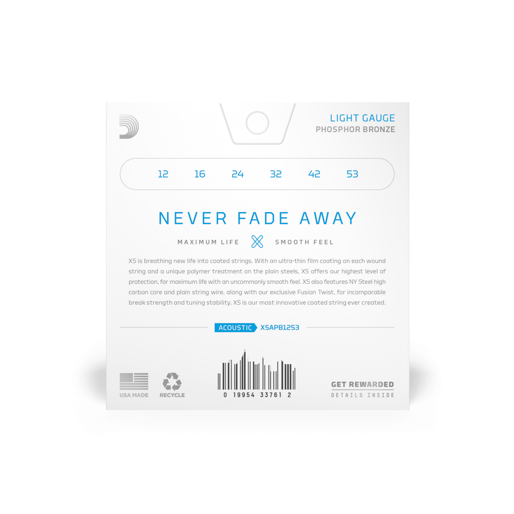 - XS Phosphor Bronze strings have the longest life of any D’Addario acoustic string, thanks to the ultra-thin XS film coating.