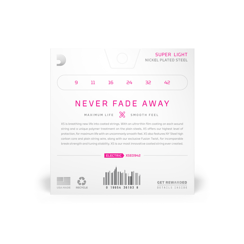 - XS Nickel strings have the longest life of any D’Addario electric string, plus a smooth, fast feel, thanks to the ultra-thin XS film coating.