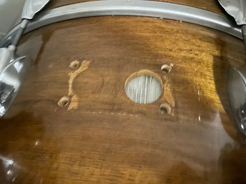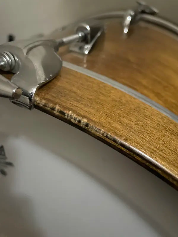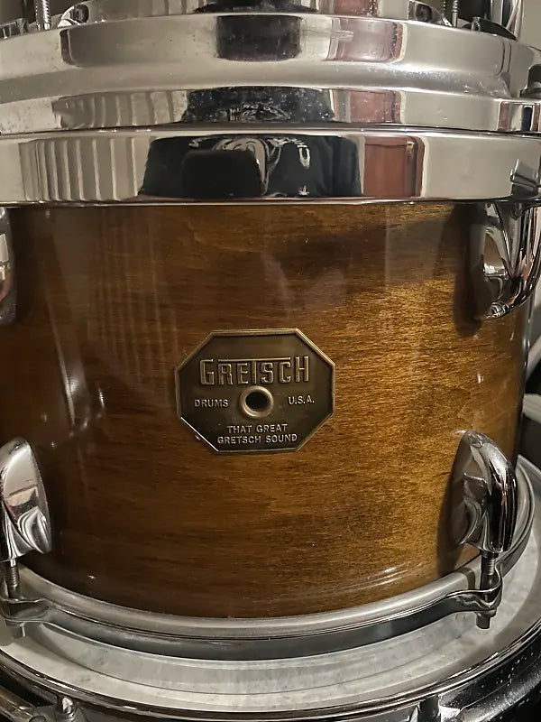 For sale from Metz Music is this gorgeous 2 owner player-grade mid-70's Gretsch USA Stop Sign Badge 5pc Shell Pack in Gloss Antique Maple w/ hardware. The kit has had some modifications over the years, all done by (or professionally at the request of) the original owner. The toms have all been converted to use Gibraltar TSS suspension mounts, therefore leaving the drill holes from the original mounts and floor tom legs. The bass drum has been converted to a "virgin" kick, though all original holes are still visible. The spurs were also upgraded to more standard heavy duty telescoping spurs. The batter side kick hoop was modified to allow use with a pedal riser to prevent the pedal chain from catching on the hoop. Also to be noted, the 8" and 10" were added to the factory sold kit as concert toms, but bearing edges and lugs have been added to make them shallower standard toms.