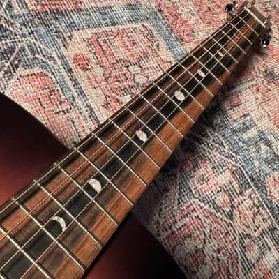 The Martin D-X2E Molly Tuttle delivers Molly’s signature look and feel in an accessible, road-ready package. Inspired by her 1943 D-18, it features a fast, comfortable 1940s neck profile with a 1 11/16" nut width—offered here for the first time in the X Series. A vintage sunburst top, custom oval tuner buttons, and moon phase inlays bring Molly’s artistry and individuality to life. Figured mahogany HPL back and sides ensure durability across any climate, while scalloped X-bracing and a solid spruce top provide clear, articulate tone. Nickel open gear tuners, a softshell case, and Martin E1 electronics round out the details, making this a true signature model that brings Molly’s style and player-focused specs within reach of more musicians.