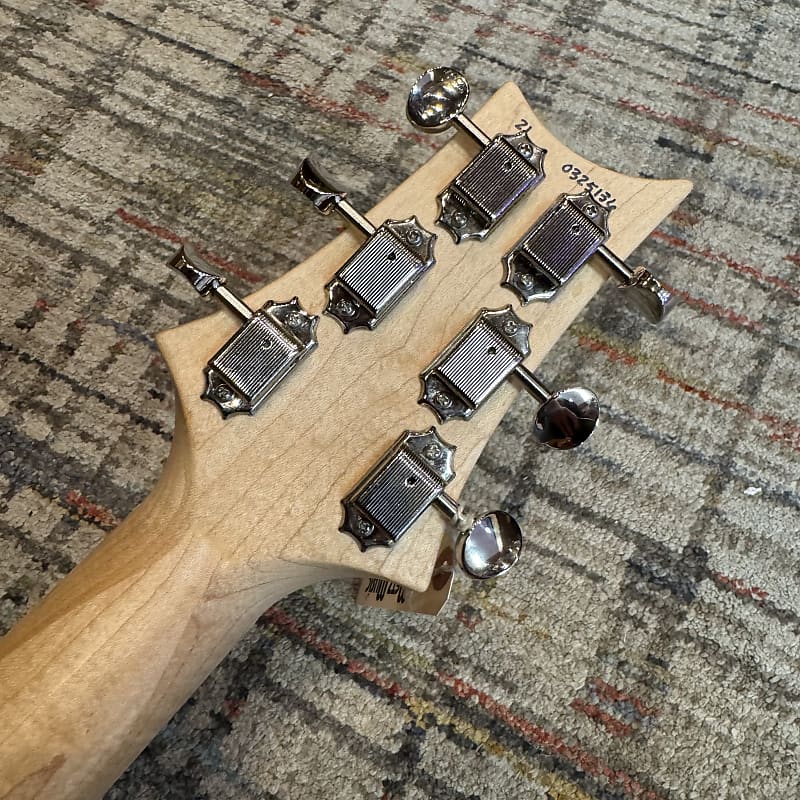 For sale from Metz Music is this killer PRS Fiore in a slick Black Iris finish. These guitars a super versitile with their variety of pickups plus the ability to coil-split the humbucker. This one has a bit of swirling on the finish, which could probably be removed with a high-powered buffer and some light grit polish. Please check out the pictures if you have any questions about it. Other than that, this guitar is in great shape and plays perfectly. We have it set up and playing its best, plus you get the original gig bag that came with the guitar.