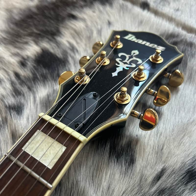 The AM93 features a medium-sized, double-cutaway, semi-hollow body design with a laminated quilted maple top with ƒ holes and ivory multi-binding on quilted maple back and sides mated to a set-in mahogany and maple neck with a 22-fret rosewood fingerboard with ivory binding and acrylic block position markers. Components include a pair of professionally installed Gibson BurstBuckers and individual volume and tone controls, a Tune-o-matic style bridge with a Quik Change tailpiece, a plastic nut, Sure Grip III knobs, a black bakelite pickguard and Ibanez tuning machines. This used model also includes a hardshell case!
