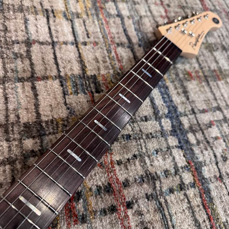 - 12” radius fingerboard with medium jumbo stainless steel frets